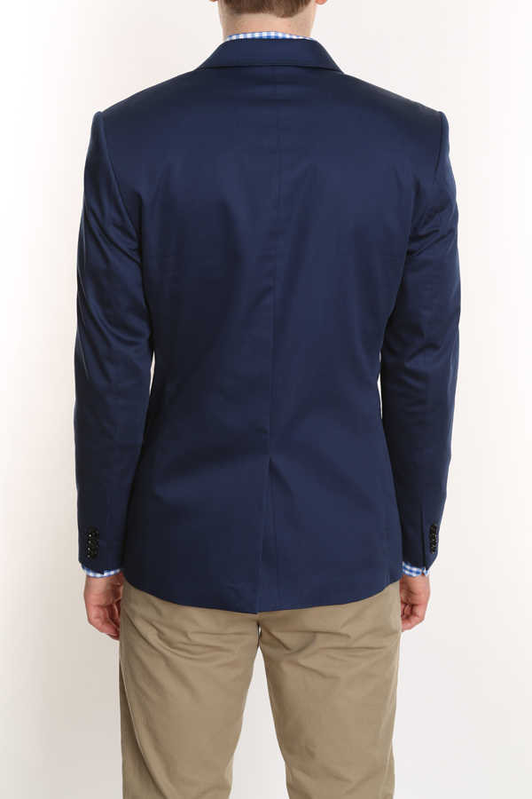 Two button, single vented, notched lapels. Slim cut through the shoulders chest and waist. Flap pockets, welt inside chest pockets. Cotton/lycra. Dry clean. - Informação Adicional