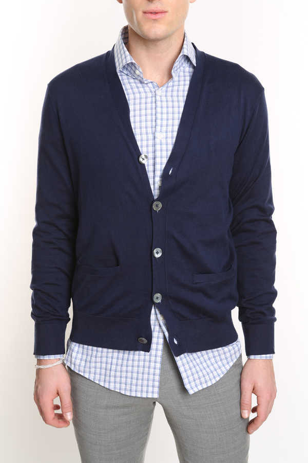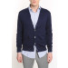 V-neck cardigan. Mother of pearl front button closure. Two dart pockets. Ribbed cuff and hem. 100% cotton. Hand wash. - Informação Adicional