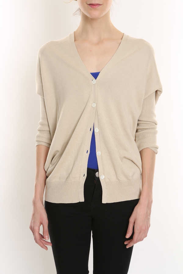 Oversized knitted silk blend cardigan. Front button closure. Ribbed hem. Silk/rayon. Dry clean. - Informação Adicional
