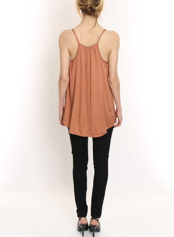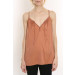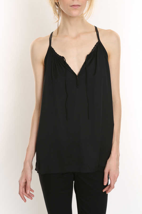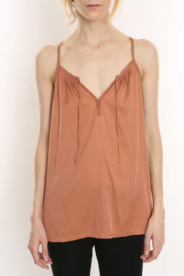 Silk cami. Tie front detail, with hook and eye. Ruched neckline. Loose through the chest and bodice. 100% Silk. Dry clean. - Informação Adicional